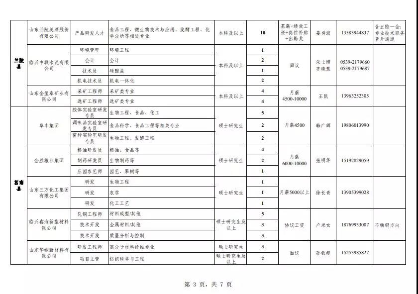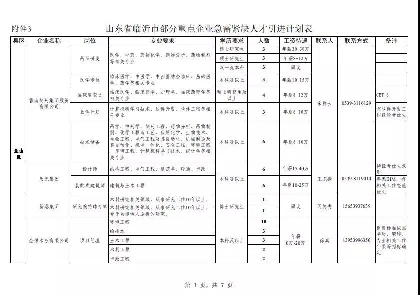 附件3:山东省临沂市部分重点企业急需紧缺人才引进计划表