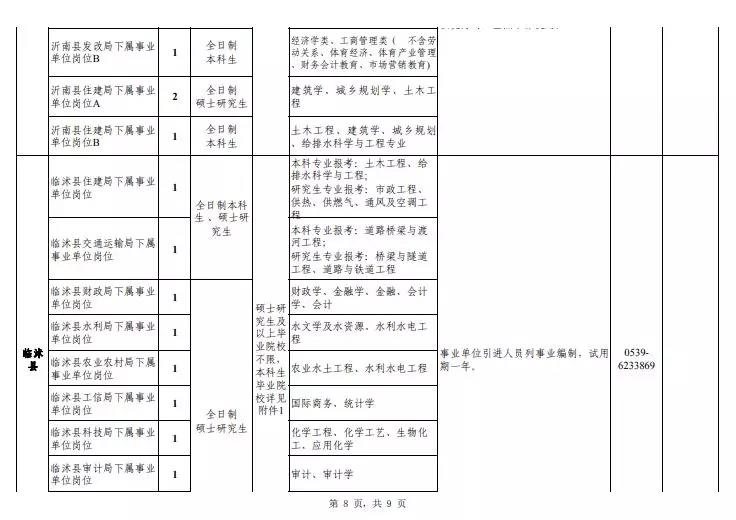 2、县区直事业单位引进全日制硕士研究生;全国部分重点高校(详见附件1)全日制本科生。