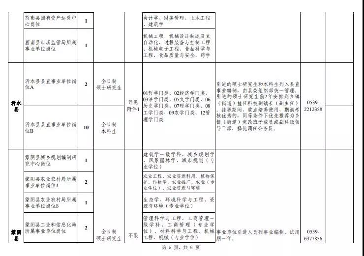 为进一步优化我市干部人才队伍结构,储备优秀年轻干部人才,大力推进“沂蒙优才”计划,加快实施大学生“凤回沂蒙”工程,决定引进一批急需紧缺人才。现将有关事项公告如下。