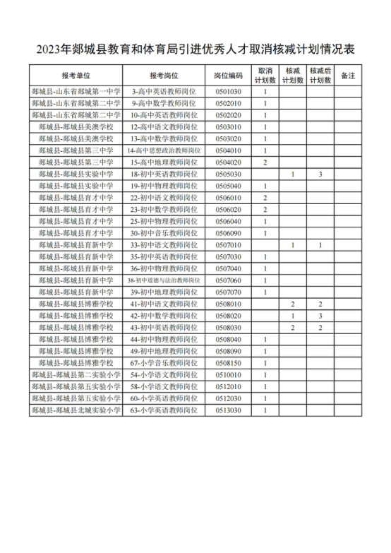 2023年郯城县教育和体育局引进优秀人才取消核减计划情况表
