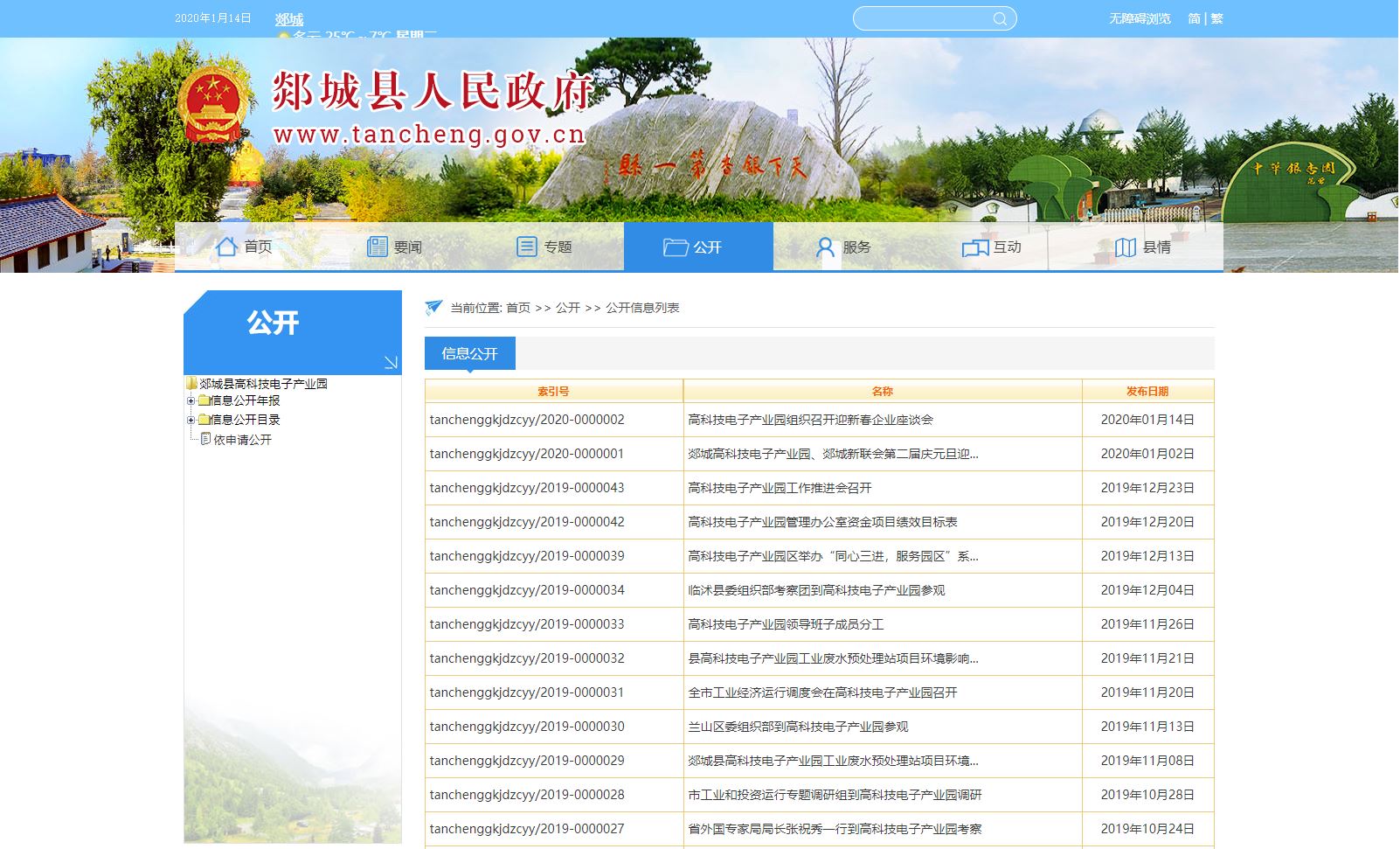 2019年,高科技电子产业园按照有关要求,及时进行信息公开工作,在政府信息公开目录上主动公开信息40条,其中公示公告8条,重点领域公开4条,工作动态28条。实现新闻动态及时更新,工作进展准确发布。统计时间为2019年1月1日到2019年12月31日。