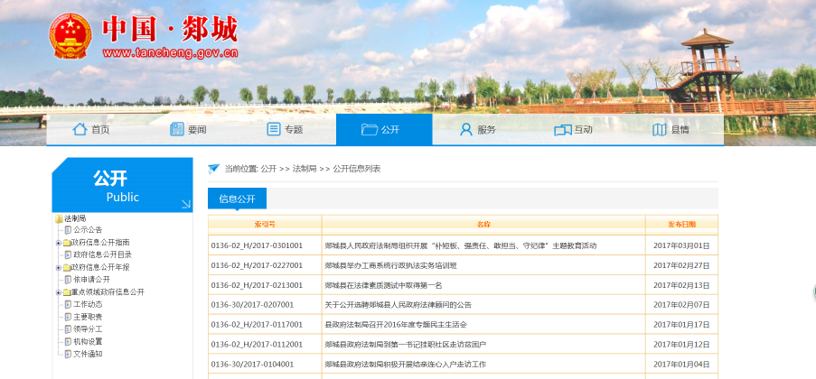 在县政府门户网站(http://www.tancheng.gov.cn/)设立工作动态、主要职责、领导分工、机构设置、文件通知等板块,及时更新相关信息,对重点信息做到准确、及时公开。通过发放行政复议指南、设置宣传栏、接待群众来信来访等方式,向群众宣传、讲解行政复议知识。