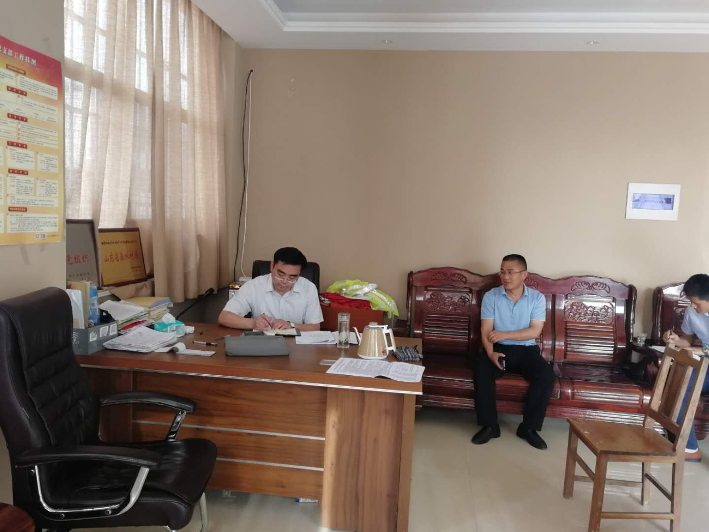 为深入了解基层工作形势,准确把握村级运转情况,新村银杏产业开发区党工委书记张炳忠同志深入有关社区、村进行走访调研,现场了解各村的工作情况。各村围绕基层党建、村情民意、脱贫攻坚、重点项目、工作思路和现实困难等方面,把建议谈深,把计划谈细,把思路谈透。每到一个村,张书记都认真听取村干部的工作汇报,并征求意见建议。