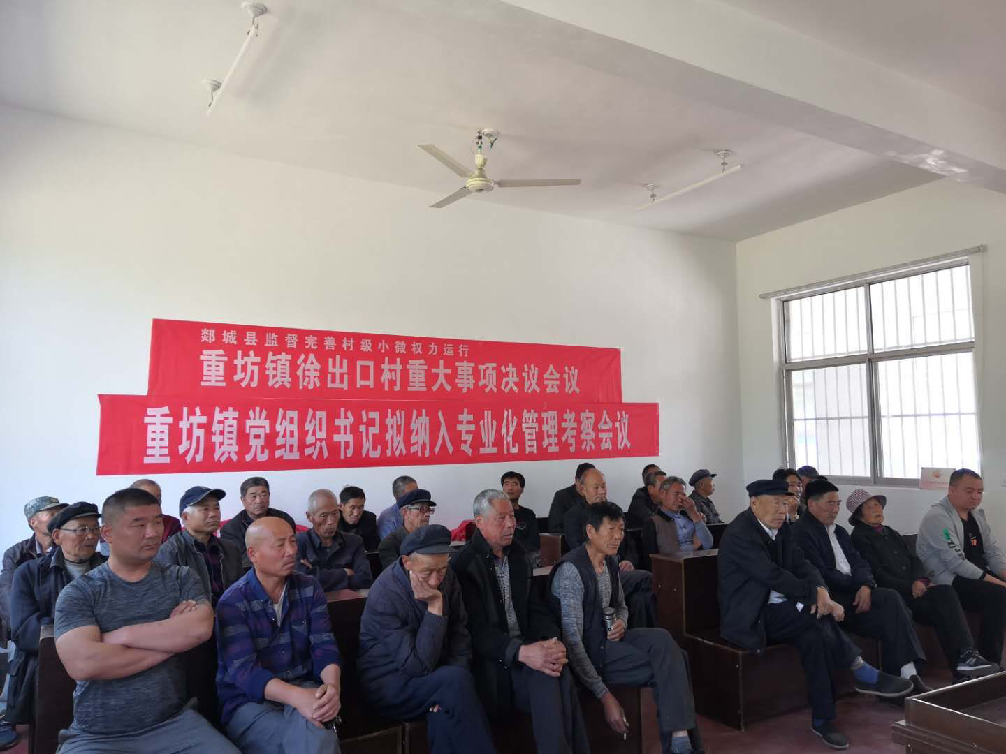 在重坊镇徐出口村会议室,村干部围坐在一起,举行班子会议,正在研究低保纳入工作。大家你一言、我一语,把想法和意见都说出来,“摆”在桌面上。
