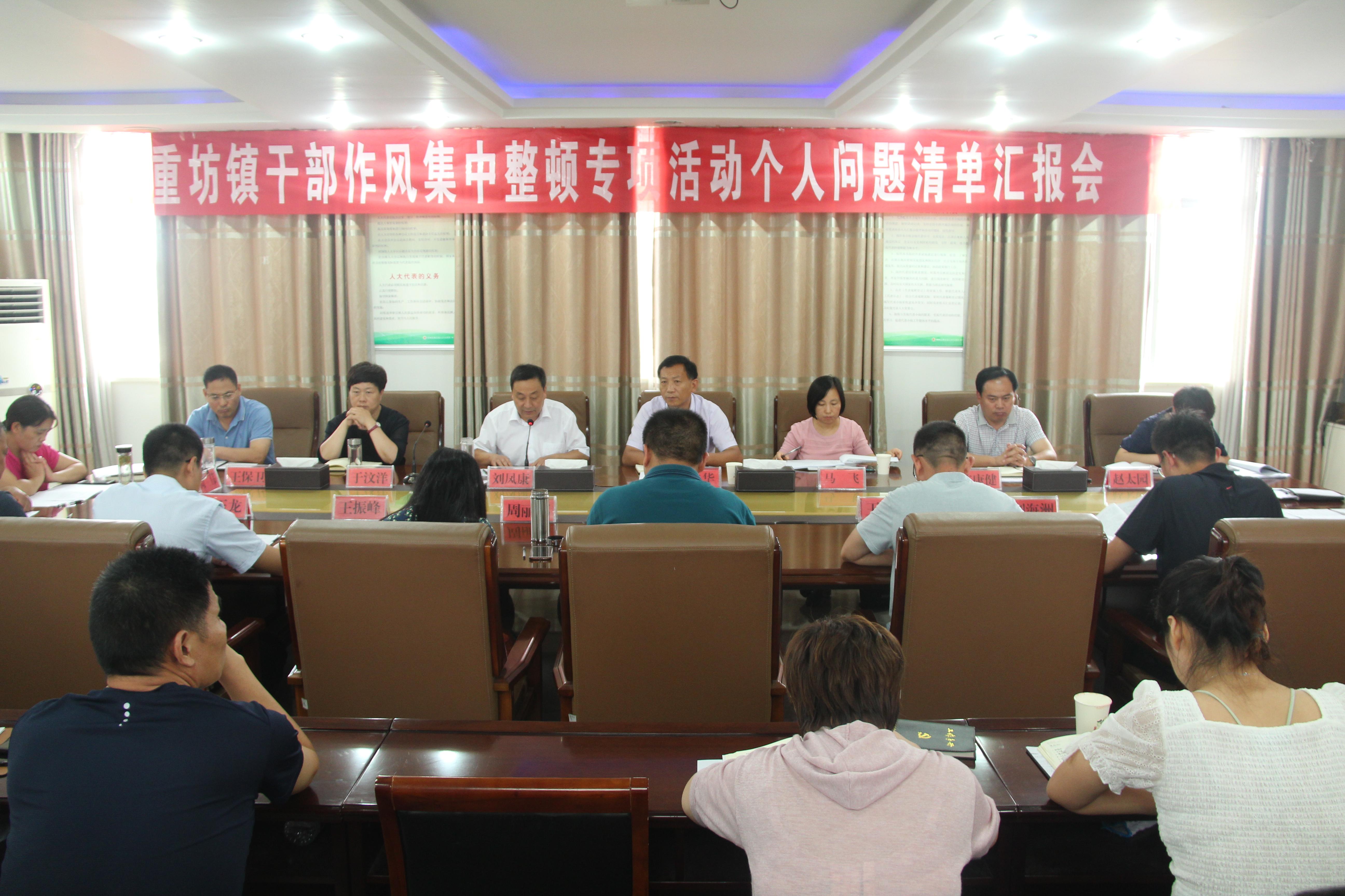 8月6日,重坊镇召开干部作风集中整顿专项活动个人问题清单汇报会,全体科级干部及中层干部参加会议。县纪委监委派驻第四纪检监察组组长徐自华,县妇联副主席、党组成员马飞到会指导。会议由镇党委书记刘凤康主持。