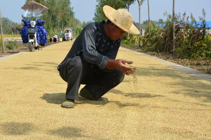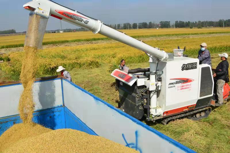 在归昌乡官庄社区杨葛、夏庄、陈官庄等村规模连片的水稻机收现场,一台台久保田、洋马收割机在一片片金黄色的稻浪中纵横驰骋,轰鸣的马达声震的人心颤,随着水稻收割机驶过,金灿灿的稻穗被“吃”进收割机的“肚子”里,与秸秆分离后的稻粒又从出料口“吐”进各种运输车辆的车斗里,有的农户直接拉到粮食购销点销售,既减少了晾晒的辛苦,同时直接领到现钱,享受着丰收后获得的果实。有的农户借助田间水泥路进行晾晒,晒干后留一部分自己食用,余下的卖个好价钱。