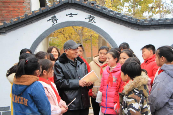 在“一门三博士”家庭门口。年龄74岁的刘宝民老人向学生们介绍了他的家风家训情况。刘宝民老人过去是当地的一名民办教师,在家庭经济十分困难的情况下,他依靠“勤俭持家、读书继世”的良好家风,相继培养三个子女读完博士学位。他的育子之道像涓涓溪流滋润着学生们幼小的心田,让在场的学生们深受教育和鼓舞,纷纷表示将把博士巷的良好家风家训内化于心,激励自己好好学习,成为社会的栋梁之才。