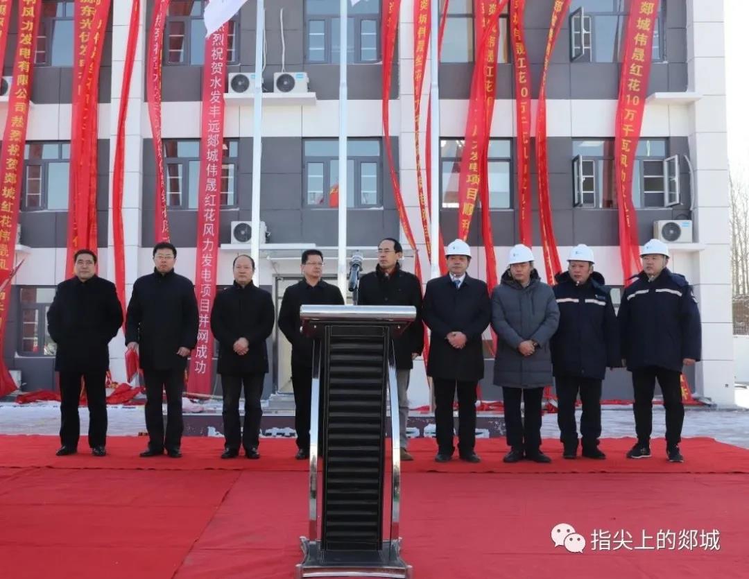 12月30日,郯城伟晟红花99兆瓦风力发电项目举行并网仪式,县政协主席宋玉智,县人大常委会主任刘昌栋,县委常委、常务副县长苗运全,县政协副主席毛贵川参加仪式。