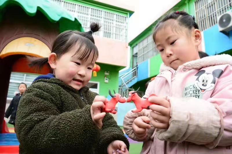 近日,泉源镇东三汪村面塑传承人郑贵国和郑贵峰在童真幼儿园现场创作面塑牛年新气象题材作品,让孩子们了解和学习面塑技艺,使这门古老而又精美的艺术得以传承和发扬。