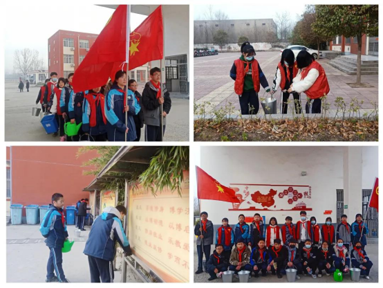 花园镇中心中学又是另一番忙碌景象。同学们争当校园文明使者,利用中午休息时间争先恐后的拿起抹布、扫帚、水桶,打扫校园,不怕脏、不怕累,他们有的挥舞扫帚清扫路面,有的细心捡拾草丛里的垃圾碎片,有的用抹布擦掉宣传栏的尘土,有的用水壶给校内的花草浇水。现场好不热闹!