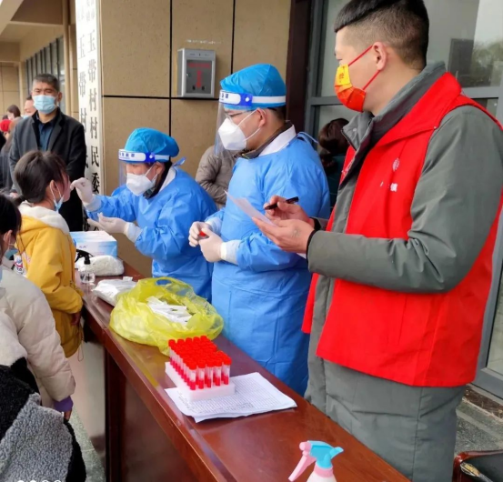 党员先锋“得”力。全镇1000余名党员发扬“我是党员我带头”精神,在事前、事中、事后三个阶段,全面履职尽责,发挥先锋力量。事前,党员志愿者准确摸清应检村民底数,建立人员检测台账,通过广播、微信群、电话、入户等方式通知到位,召集好参加核酸检测村民,严格按照防疫要求和标准,保障核酸检测工作有序开展;同时,带领医护人员上门为行动不便的老人、残疾人、病人等特殊群体进行核酸检测,确保不漏一人。事后,配合做好现场消杀工作,消除感染风险。