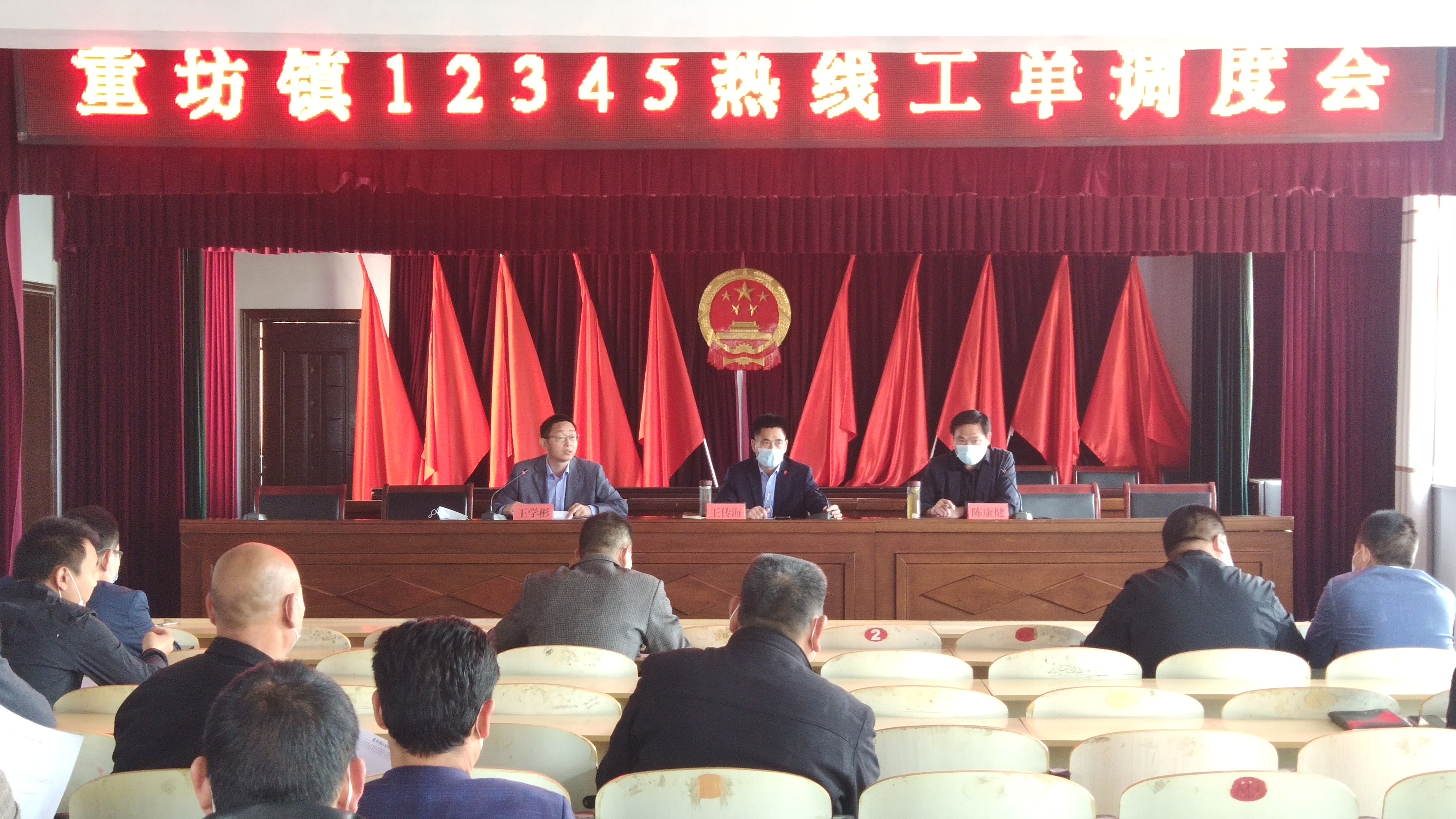2022年4月28日,重坊镇召开12345热线工单调度会,会议听取了热线办近期工单情况汇报,并由各社区及村逐个汇报了工单办理情况。镇党委书记王传海亲自进行调度,镇党委副书记、镇长陈康健,党委副书记王学彬,相关社区及村负责人参加会议。