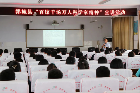 会后,在胜利镇初级中学开展了郯城县“百馆千场万人科学家精神”宣讲活动,郯城县科协副主席朱红忠同志为学生做了一场题为《弘扬科学家精神争做新时代追梦人》的报告。围绕习近平总书记对科学家精神的论述及青少年科技教育的新要求;科学家精神的内涵,深刻领悟科学家精神;如何弘扬科学家精神,争做新时代追梦人三个方面进行了深入浅出的讲解。感人的故事、真挚的感情、亲切的话语燃起学生追逐科学大梦想,激发了同学们爱党、爱国及爱科学、学科学、用科学的热情。