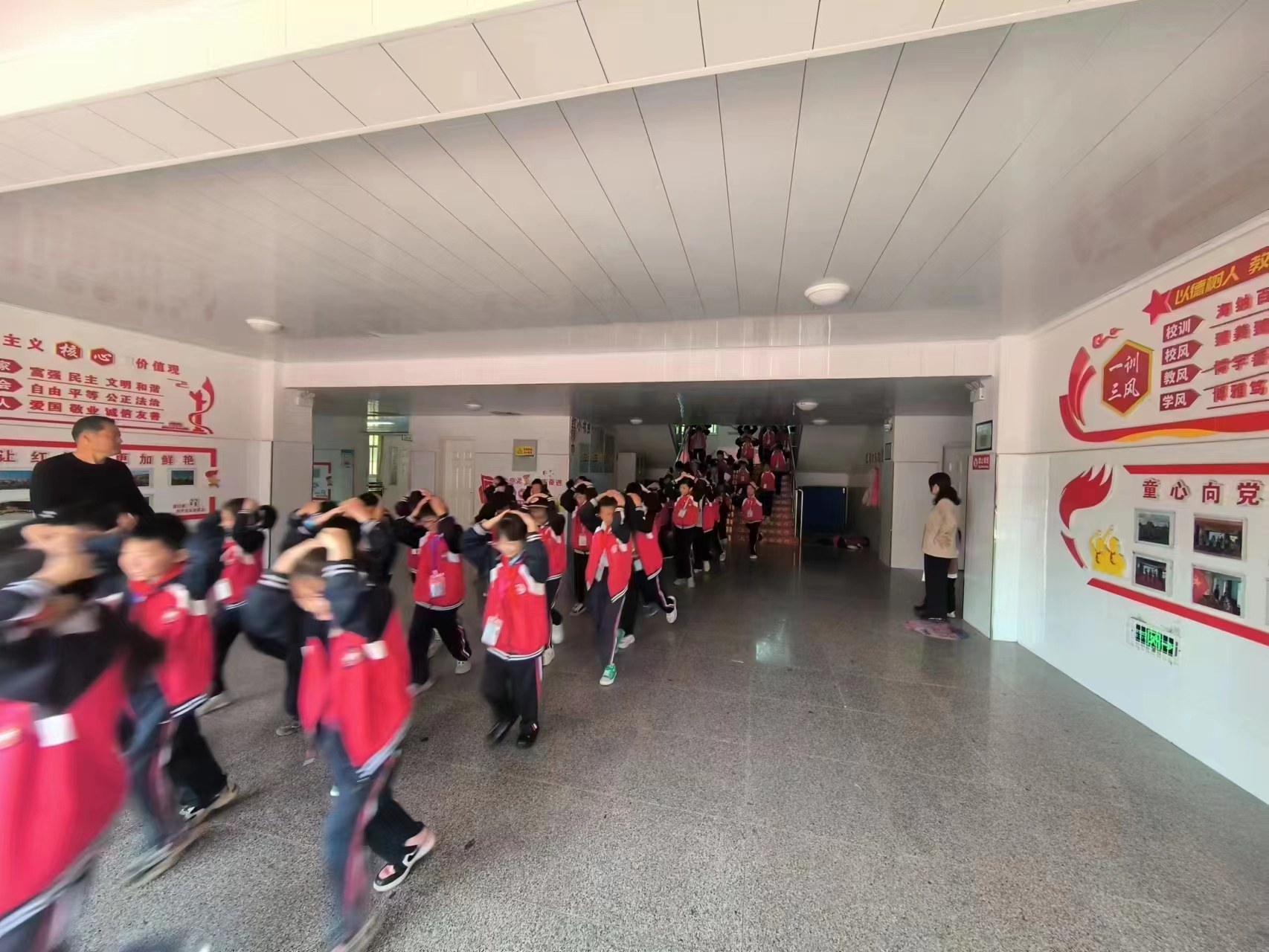 为提高学生的安全意识,增强学生安全逃生能力,高峰头镇中心小学在全国第15个防灾减灾日举行防震疏散演练活动。