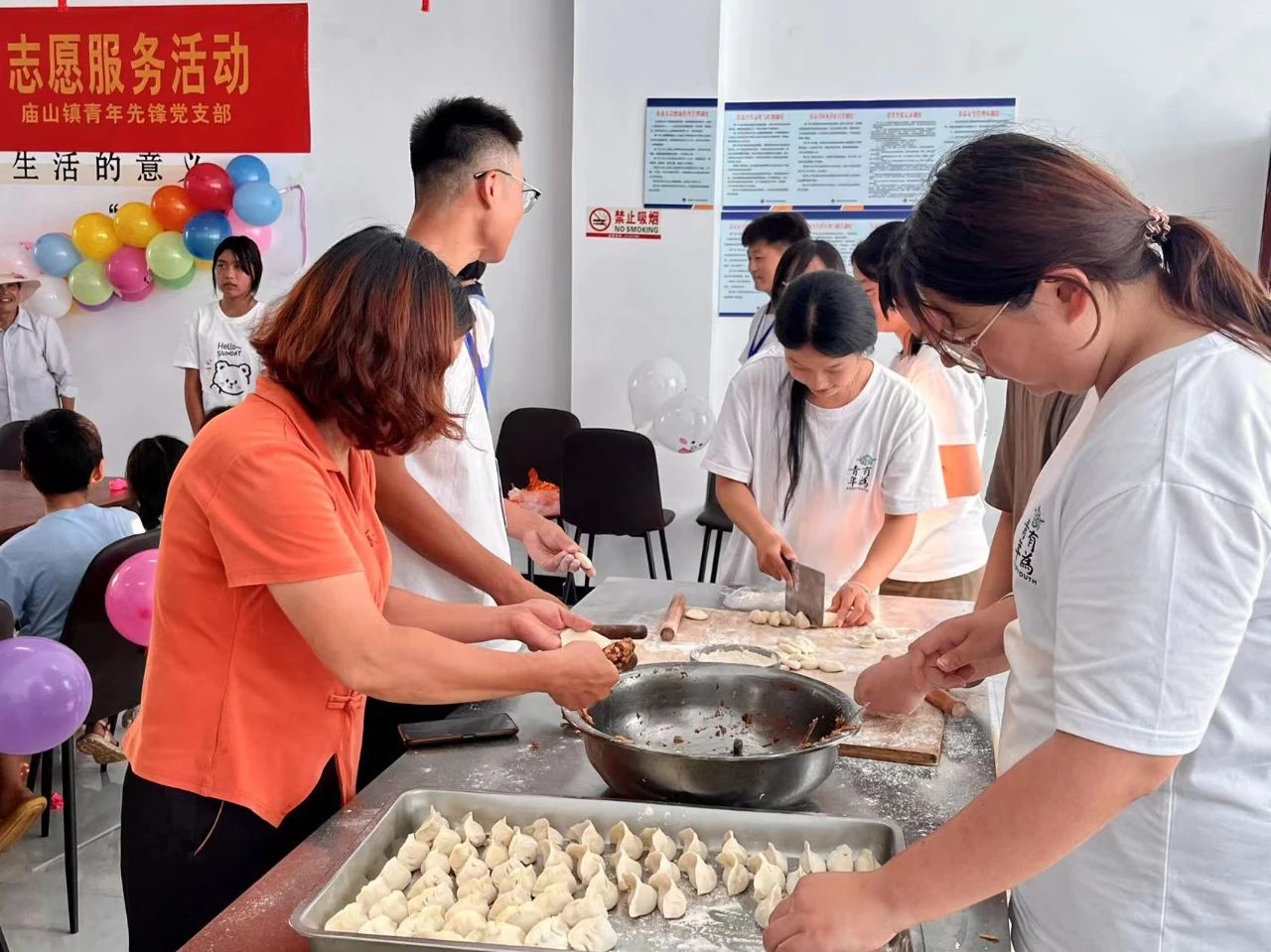 活动在孩子们欢呼雀跃声中“拉开帷幕”,在工作人员的带领下,小朋友们积极踊跃,他们各自展示自己的才艺,趣味十足,脸上洋溢着天真的笑容,游戏互动不仅营造了活动的氛围,也拉近了小朋友的距离,还调动了大家的积极性。在游戏互动的同时志愿者们还为孩子们包了饺子,志愿者们积极动手和面、擀皮、包饺子。大家各自发挥自己的特长,大家欢声笑语,其乐融融。