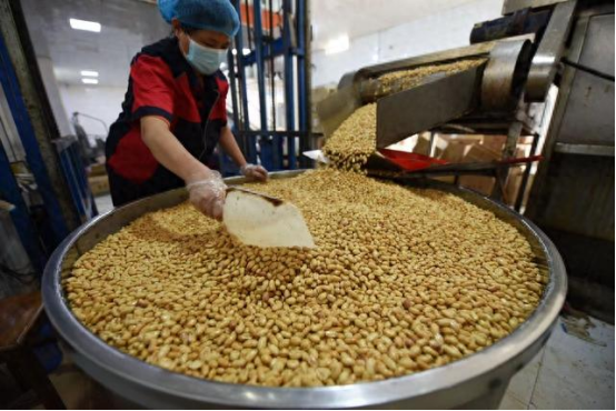 9月5日,马头镇西爱国村鑫恒农业种植农民专业合作社社员为下单的电商准备“香酥花生”。