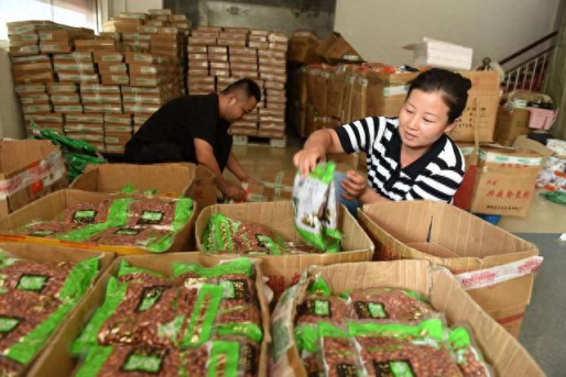 9月5日,马头镇西爱国村鑫恒农业种植农民专业合作社社员为下单的电商快递“香酥花生”。