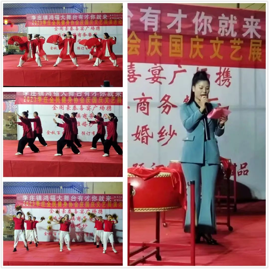 为庆祝中华人民共和国成立74周年,展现人民群众良好精神风貌。10月6日,2023李庄全民健身协会庆国庆文艺展演活动在李庄金阁豪泰餐饮有限公司举行。