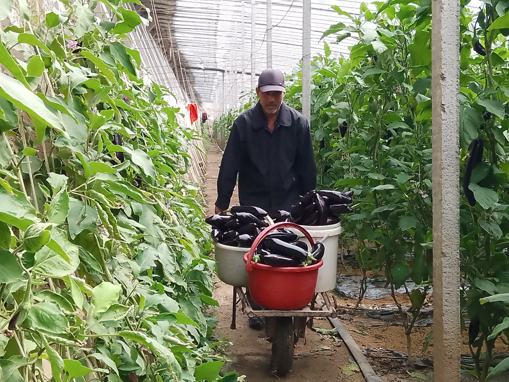 石柱子村通过党支部领办合作社等方式组织带领党员干部群众到“蔬菜种植之”寿光以及周边乡镇大棚种植区考察学习,发展大棚茄子等反季节蔬菜种植项目,助力乡村产业振兴。合作社从山东济宁、江苏沭阳、东海等地引进优质茄子、西红柿苗,按照绿色、无公害种植技术标准,统一栽植,统一土、肥、水管理,统一病虫害防治,提升大棚茄子生态、绿色品质,增加种植户的收入。“多年来我们村农户多以种植大棚西红柿为主,受重茬影响,病害相对重一些,管理难度大,产量、质量以及群众收入受影响,今年,我们通过考察,从济宁引进了抗病强的茄子新品种‘绿鄂765’,由3家种植户先行示范种植,然后全面推广种植”。石柱子村负责人介绍说,“目前,我们村大棚茄子已迎来‘丰收’季,陆续采收上市,客户上门收购,按照现在的行情,每个棚收入4、5万块钱不成问题!”。