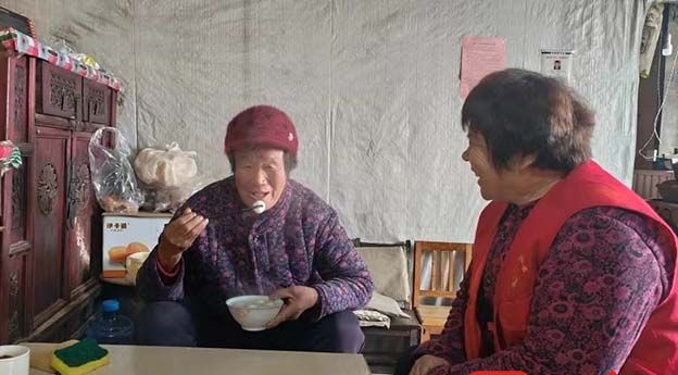 活动中,党员和群众一起把汤圆分装好,志愿者们为老人送去汤圆、水饺和节日祝福,让老人们感受元宵佳节的喜乐。送完汤圆后,志愿者们为老人清扫门前院内积雪,叮嘱老人出行要谨防滑倒摔伤,及时添加衣物。
