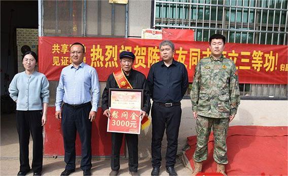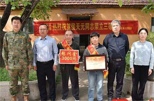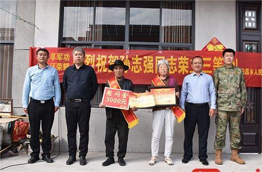 归昌乡人武部、退役军人服务站、民政办联合县退役军人事务局,为在部队荣立三等功的三名现役军人家庭送去立功喜报和慰问金。