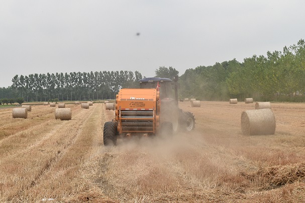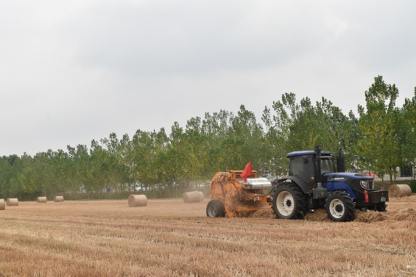 在郯城县杨集镇程集湖片的农田里,小麦收割后,秸秆捡拾机、打捆机在田间来回穿梭,把小麦秸秆捡拾、打捆成团,抓草机和运输车协同配合将圆筒形小麦秸秆捆清运出农田。“打捆后的秸秆,一部分销售给当养殖户,用于牛、羊等牲畜的饲料,一部分运往发电厂,用于焚烧发电。”杨集镇金铭农业种植合作社负责人称,小麦秸秆经捡拾打捆后,运往农作物秸秆储存加工厂进行粉碎加工,主要用作牲畜的饲料,筛下来的杂质用于当地的电厂发电,每天可以加工秸秆、牲畜饲料70余吨,重点发往东北三省和内蒙古等畜牧业发达地区,每年可回收废弃秸秆2万余亩,年消化量2万余吨,提高了秸秆的综合利用率,增加了经济收入。同时,利用机械充分捡拾抛撒散漏麦田的麦草,不仅可以下茬农作物的出苗率,减少病虫害,还可以促进环境质量改善和农业可持续发展,实现秸秆综合利用、节能环保的双赢。