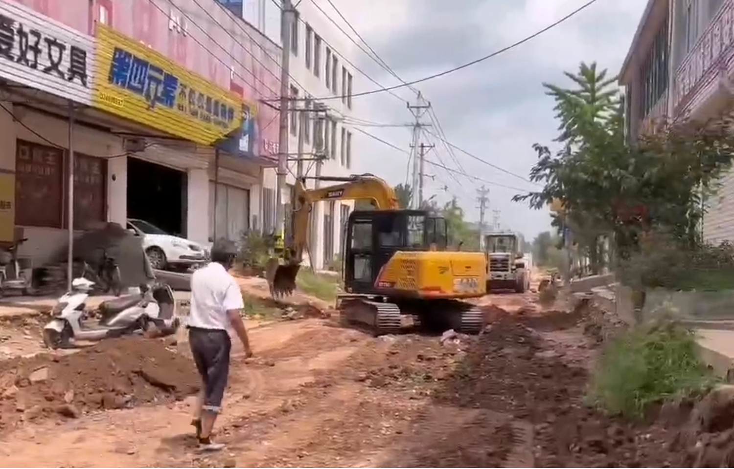 工程现场,工人们有的扛着建筑材料,有的拿着施工机具,踩着滚烫的地面,迎着热浪不断来回穿梭,坚守一线,铆足干劲,在自己的岗位上尽职尽责。联伍、孙塘等村的公益岗人员、党员志愿者主动请战,到施工一线做好服务保障,保障工程迅速推进。
