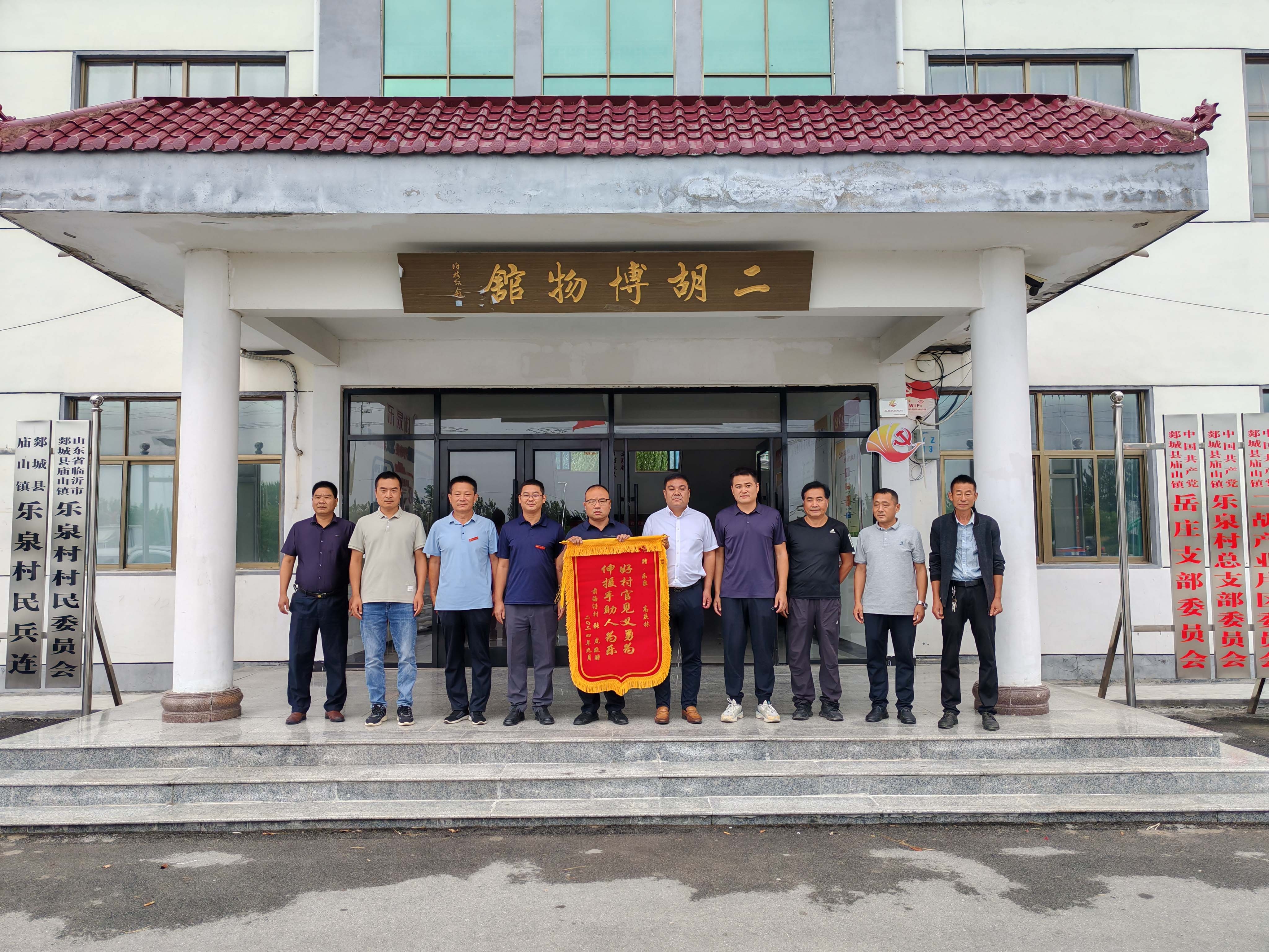近日,郯城县庙山镇岳庄党支部书记高庆林在日常巡河时,突遇一少年骑电动三轮车跌落路边水沟,高书记挺身而出,成功救起落水少年。9月6日,该少年家长带领锣鼓队对为高书记赠送了一面“好村官见义勇为 伸援手助人为乐”锦旗表示感谢。