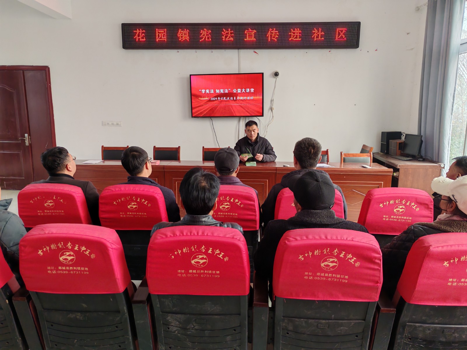 在花园社区,工作人员为社区群众播放宪法宣传片,并为居民提供法律咨询和援助服务,耐心解答居民们关于法律问题的疑惑,发放宪法宣传手册和资料,营造了浓厚的法治氛围。