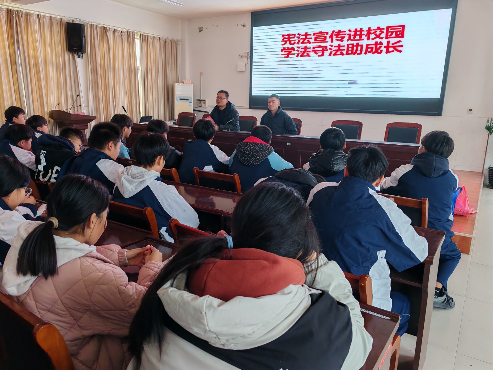 活动期间,司法所工作人员走进花园镇中学,通过生动的案例和有趣的互动,为师生们带来了一场别开生面的宪法知识讲座。他们深入浅出地讲解了宪法的基本内容、公民的基本权利和义务,引导学生们从小树立法治意识,做遵纪守法的小公民。