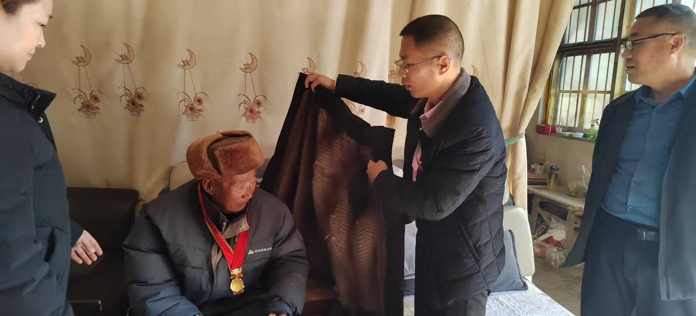 志愿者分别看望了解放战争复员军人石立灼、在乡复员军人王凤楼、王维喜和因战四级伤残军人樊信生,详细了解老兵们的生活情况及身体状况,并为老兵们送上牛奶、棉衣、棉鞋。其中,石立灼讲述了解放战争时的峥嵘岁月,志愿者认真聆听。