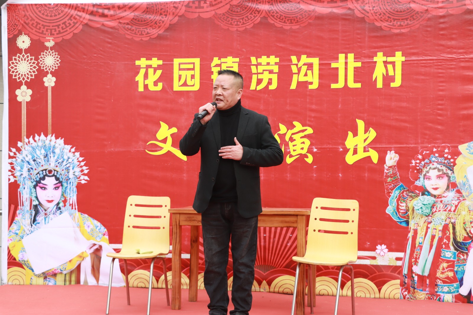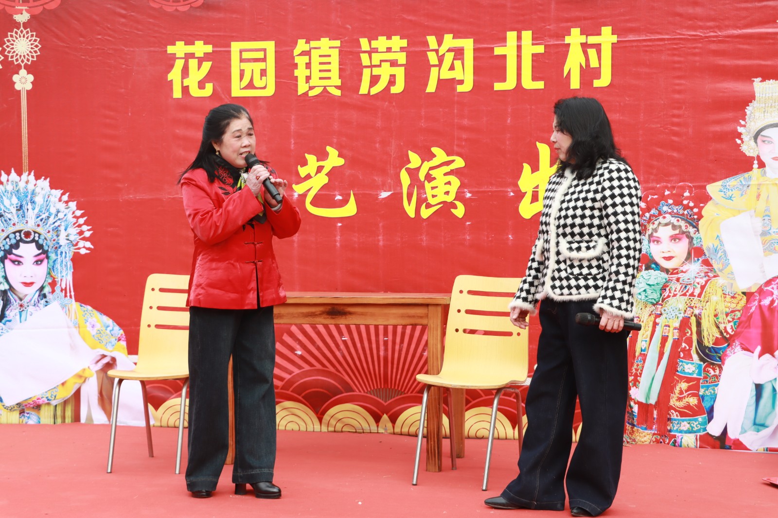 正月初九,花园镇涝沟北村正值逢大集,热闹非凡。信用社门前,锣鼓喧天,人头攒动。一场颇具地方传统特色的戏曲演出正在火热上演,吸引了众多村民驻足观看。当地戏曲爱好者们一一粉墨登场,精湛的技艺和投入的表演赢得台下阵阵喝彩。