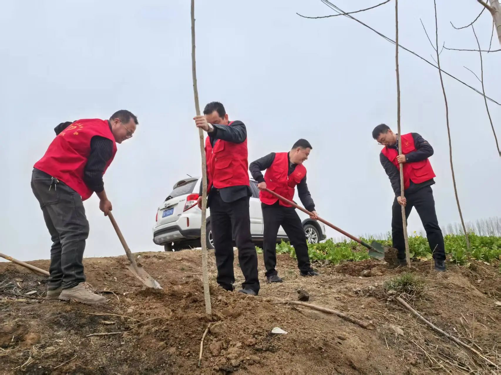 春风催新绿,植树正当时。在植树活动现场,归昌乡志愿者们热情高涨,团队分工协作,两人一组或三五成组开展协作,挖坑扶苗、挥锨培土、踩实土层、浇水灌根,动作娴熟有力。拎水的,挖坑的,扛树苗的,浇水的,来回穿梭,井井有条。一锹土,种下的既是树苗,也是生态文明的希望。一桶水,浇灌的既是土壤,也是绿水青山的梦想。目前,归昌乡各村已在所辖区域栽植女贞、紫叶李、紫薇、无絮杨等花卉苗木12000余棵,一株株树苗迎风挺立,让土地披上新装,更让生态文明理念深植人心。