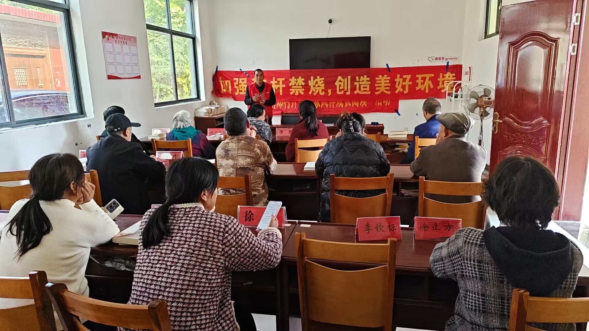 宣讲结束后,志愿者与村干部组成宣传小队,深入田间地头、村庄巷道,向正在劳作的村民发放禁烧倡议书,对个别有焚烧倾向的村民进行耐心劝导。