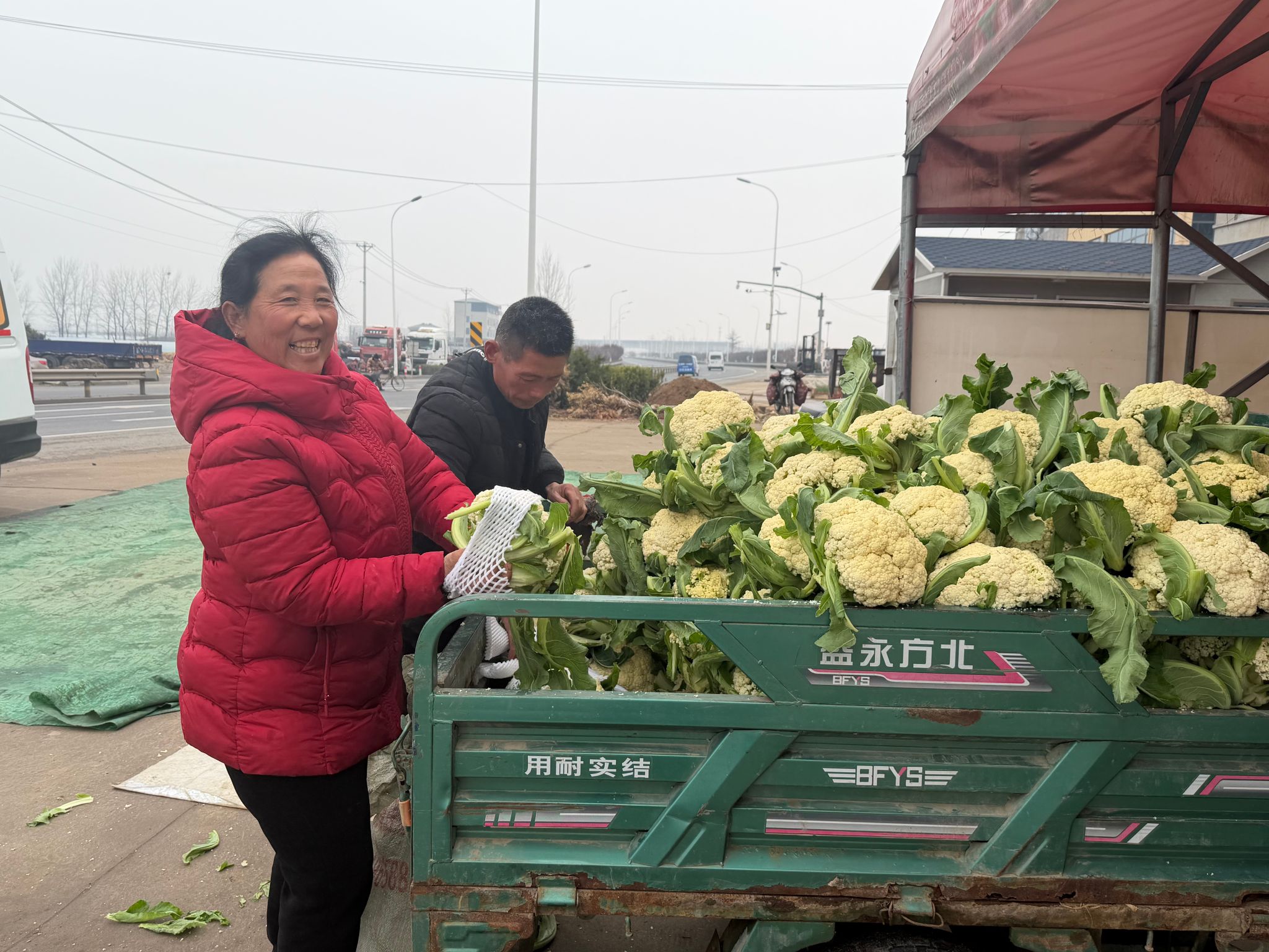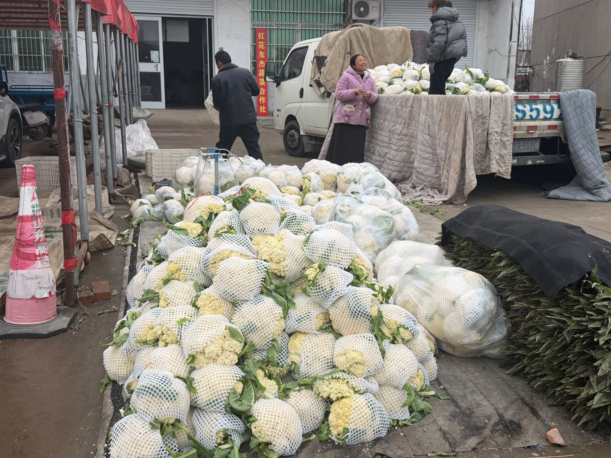 时下正值花菜集中上市时节,郯城县红花镇田间地头与交易市场一片繁忙。在红花镇花菜交易现场,一车车新鲜花菜整齐码放,种植户们忙着分拣、过秤、装车,收购车辆往来穿梭,丰收热销的景象随处可见。优质的花菜、稳定的销路与向好的价格,让菜农们脸上洋溢着丰收的喜悦。