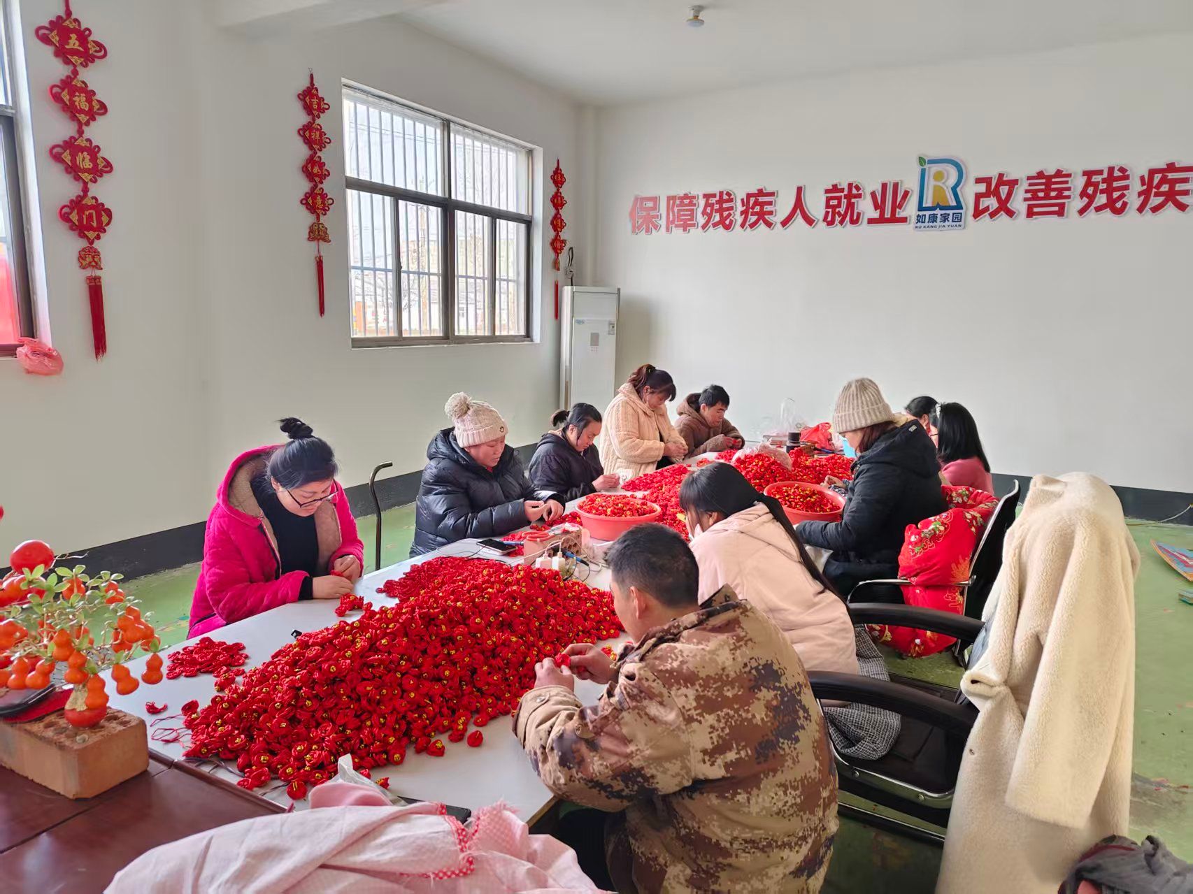 走进红花镇如康家园,暖意与生机扑面而来。手工制作间内,残疾朋友们围坐在一起,编织中国结、缝制特色荷包。穿绳、打结、缝合、装饰,大家互帮互助、默契配合,不多时,一个个精巧别致的中国结、一枚枚灵动可爱的特色荷包便陆续成型。