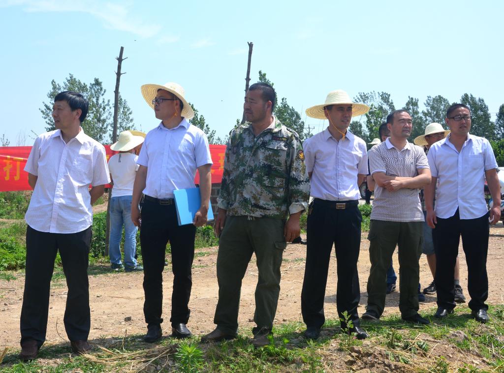 图三乡党政领导在陈庄社区前学村现场督导麦收与秸秆打捆。(李静良摄)