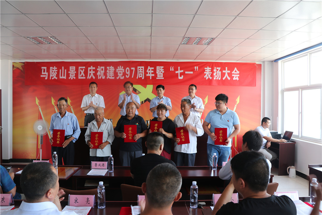 为热烈庆祝中国共产党建党97周年,6月29日上午,马陵山景区党工委组织召开庆祝中国共产党成立97周年暨“七一”表扬大会。景区全体机关干部,各村党支部书记、卫生院、乔氏建材党支部书记,受表扬的先进集体和优秀个人参加了会议。会议由党工委副书记、管委会副主任赵安宁同志主持。