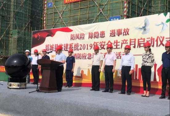 为进一步深化夏季消防安全检查,预防和控制重特大安全事故的发生,切实做好建设工程施工现场消防安全工作,提高企业职工逃生自救应急能力,6月15日上午,郯城县住建系统在城建·未来城工地现场举行“2019年安全生产月启动仪式暨消防应急演练观摩”活动。