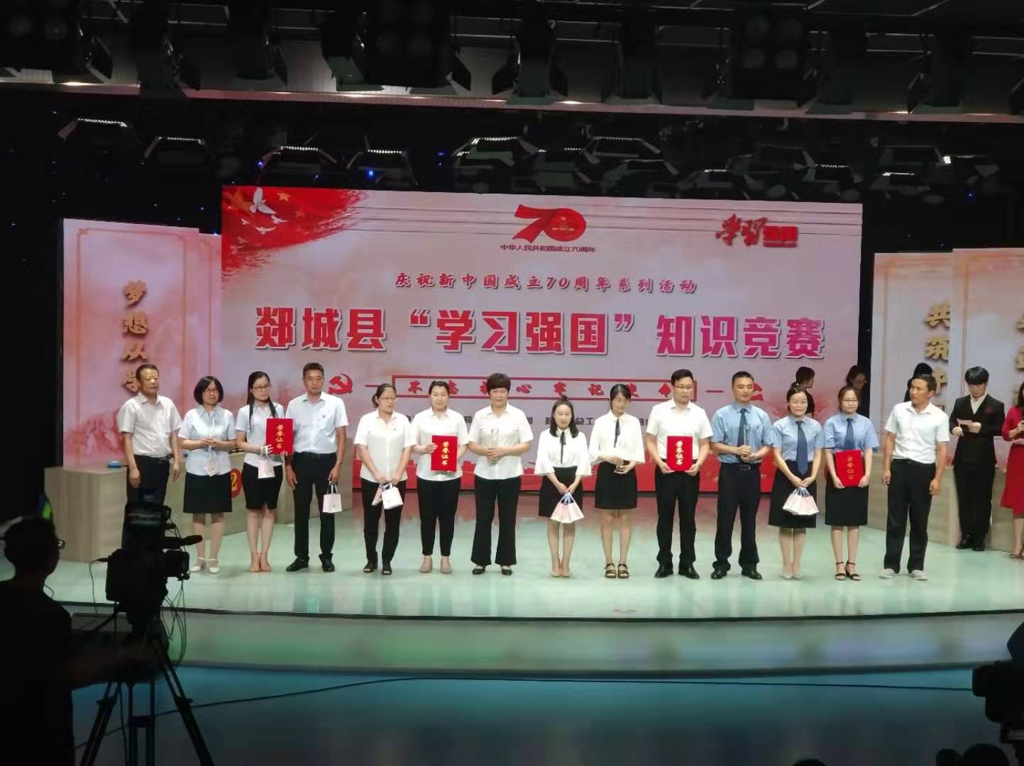 7月18日下午,郯城县发改局三名选手代表单位参加由中共郯城县委宣传部、郯城县总工会和郯城县广播电视台联合举办的全县“学习强国”知识竞赛决赛活动,并派出10名党员代表观赛,为比赛选手助阵。
