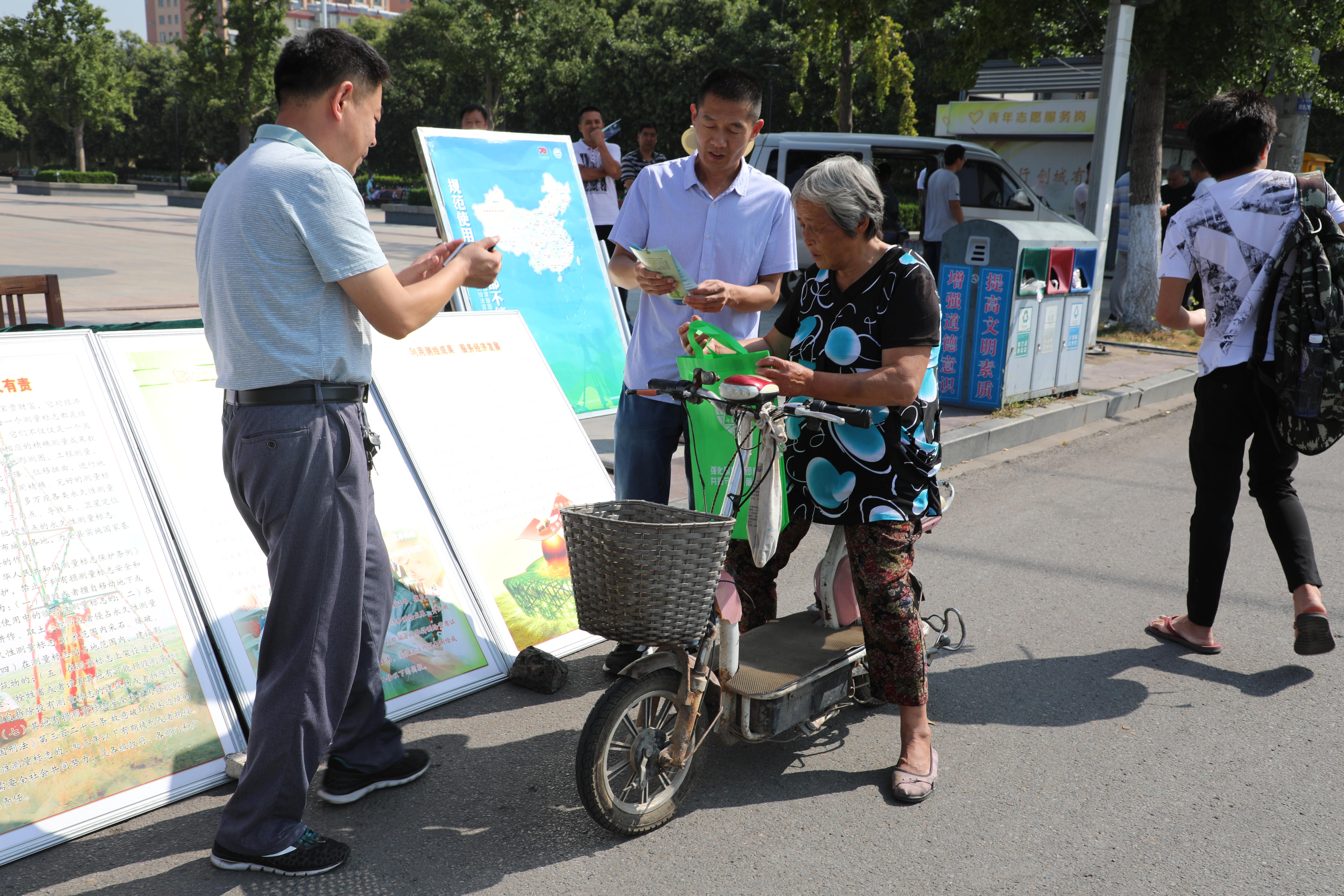宣传周期间,县自然资源和规划局、各测绘资质单位在办公地点门口悬挂横幅、摆放宣传展板,电子屏幕滚动宣传,在主要交通道路悬挂过街横幅,利用县内800多辆出租车进行测绘法宣传。8月29日上午,在县人民广场设立宣传咨询站,摆放宣传展板8块,局领导及有关科室人员到现场发放宣传资料,并为群众解答测绘管理法律法规相关知识。此次宣传共散发宣传资料2000余份,公益短信3000余条,接受咨询200余人次,有力促进了测绘法律法规的贯彻实施,进一步强化了全社会遵守测绘法律法规的意识。