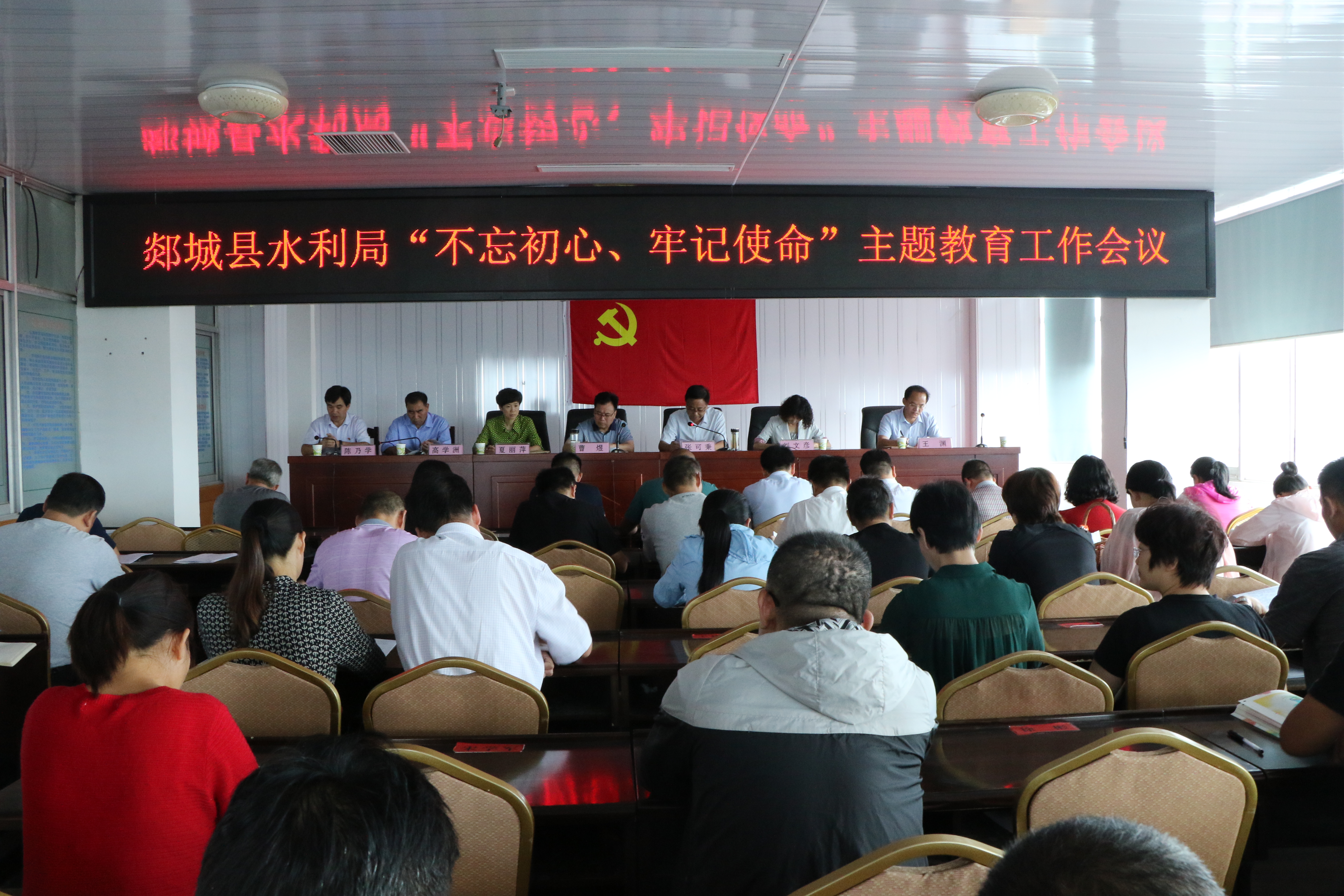 会上,下发了《在全局开展“不忘初心、牢记使命”主题教育工作方案》、《郯城县水利局开展“不忘初心、牢记使命”主题教育配档表》。