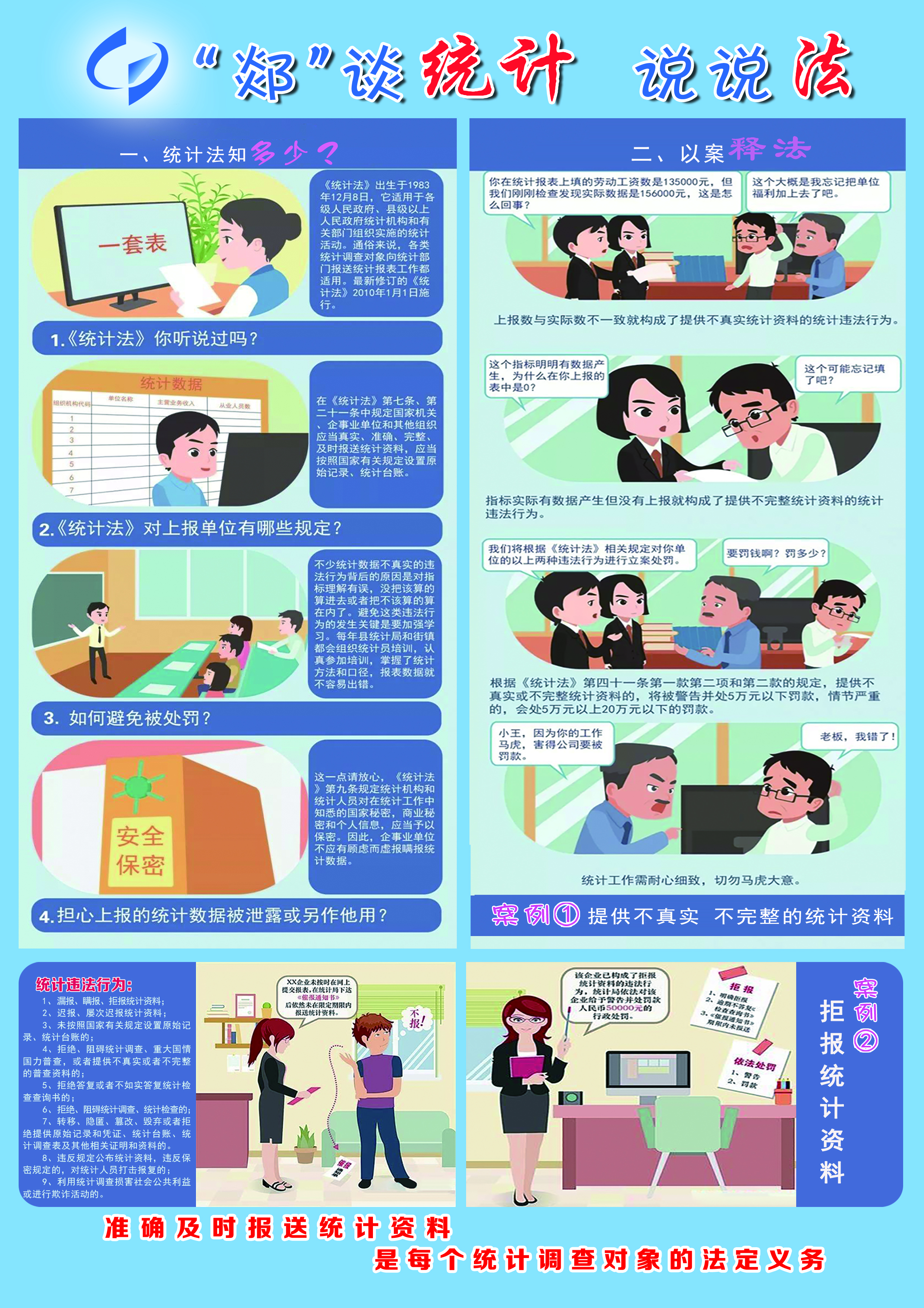 同时,联合县委宣传部、县融媒体中心等单位共同制作《“郯”谈统计说说法》统计普法专栏,在 “指尖上的郯城”、“县电视台”、“小朱说交通”等县官方微信公众号同时推送。