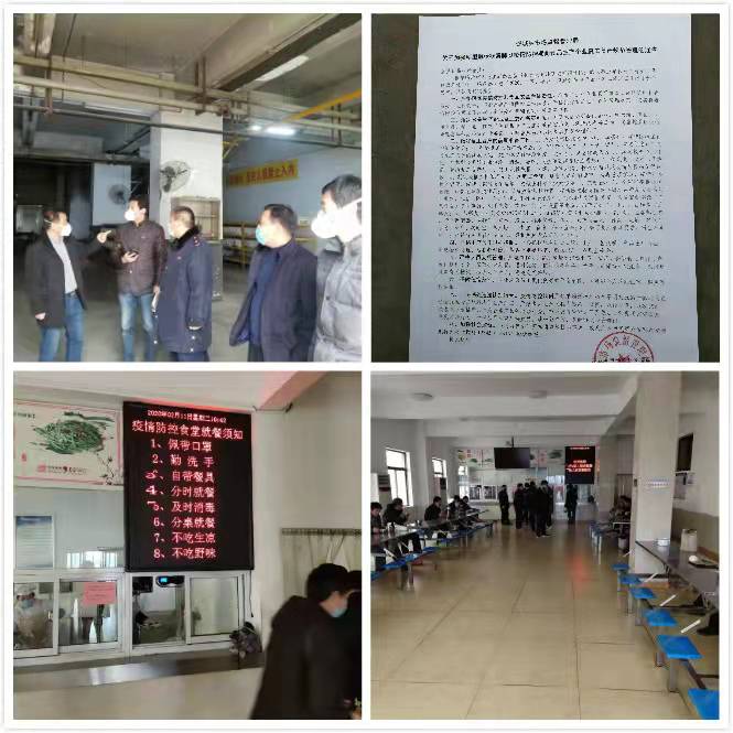 针对近期生产企业陆续复工的情况,各基层监管所、各职能科室检查辖区内企业防疫情况,尤其是粮油肉蛋奶等大宗消费品企业生产情况,并张贴《关于加强新型冠状病毒肺炎疫情防控期间食品生产企业复工复产规范管理》的通告,确保相关企业有序复工复产;另外,要求复工复产的企业食堂要做好防疫措施,采用自带餐具、分时就餐、分桌就餐等措施严防严控疫情传播。