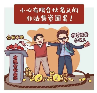 10、不法分子打着设立有限合伙企业的旗号,宣称投资人投入资金即可成为公司合伙人,与投资人签订《合伙协议》,颇具迷惑性。而事实上,投资人在公司运营过程中并不享有和履行合伙人的权利和义务,仅仅处于普通投资者的地位,根据约定到期赎回本息。不法分子的这种行为仍然是非法集资活动。