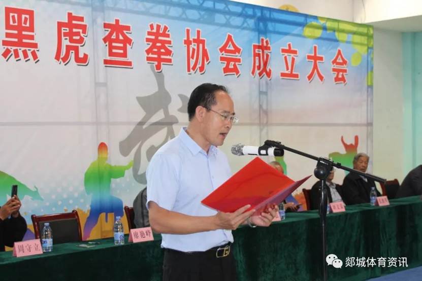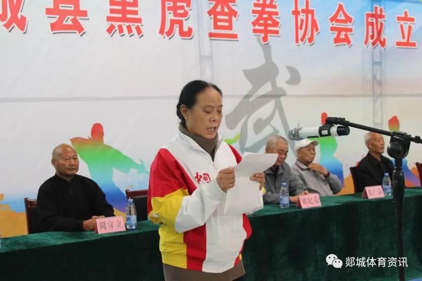 周瑞侠同志代表黑虎查拳协会表态发言,决心在县体育发展中心领导下,广泛吸收会员,积极推广和普及黑虎查拳,不辜负上级领导和社会各界的殷切希望。