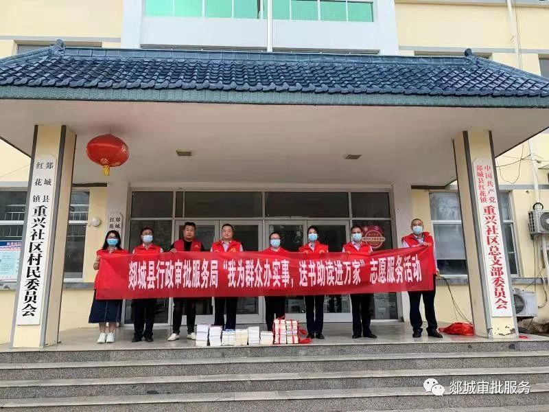 为深入开展党史学习教育和全民阅读活动,推动为民办实事走深走实,8月27日,县行政审批服务局组织志愿者到“月行一善”志愿服务活动共建社区红花镇重兴社区开展“我为群众办实事·送书助读进万家”志愿服务活动。