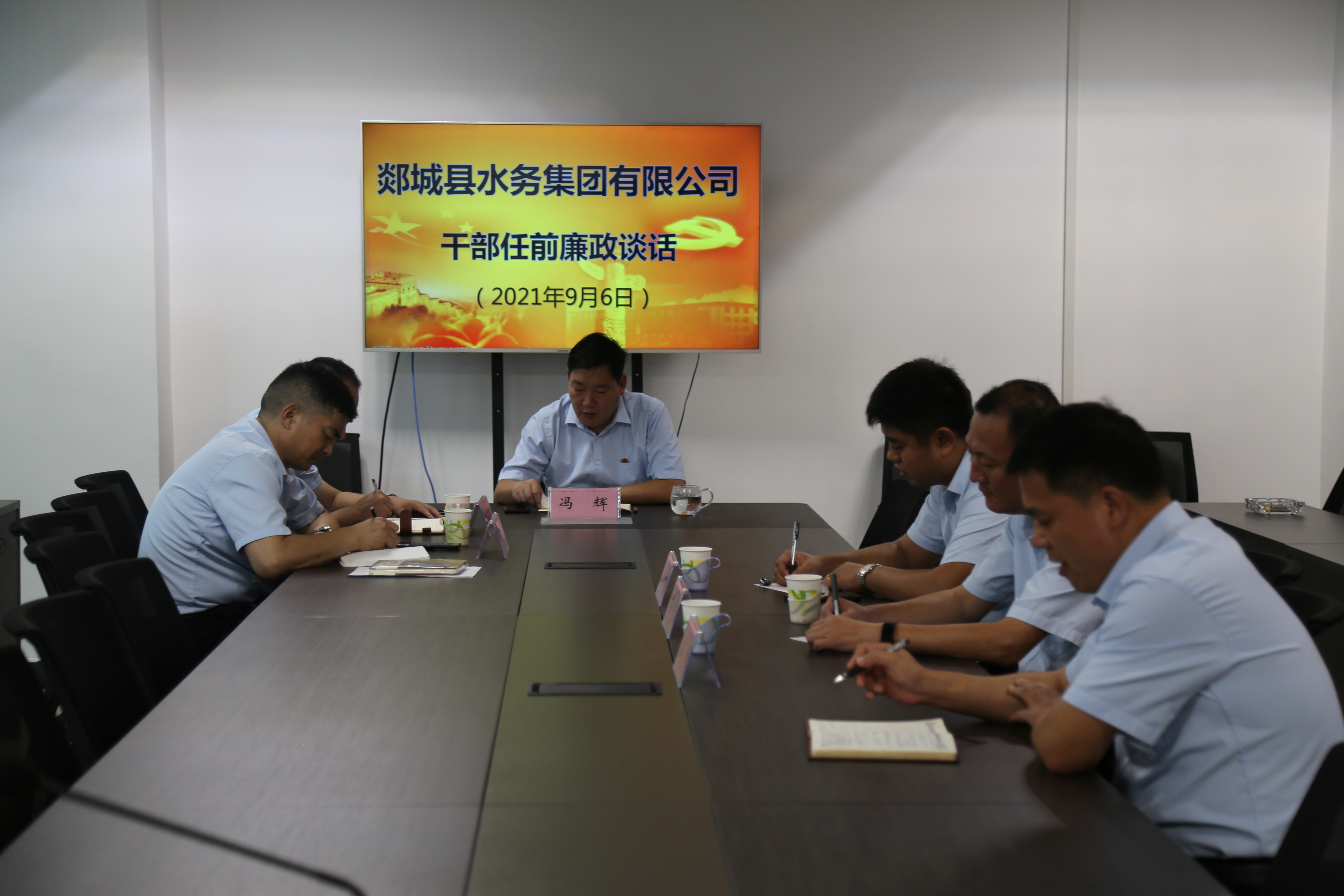 9月6日上午,县水务集团在四楼会议室开展干部任前廉政谈话会议,集团党总支书记冯辉对新调整的三名中层干部进行任前廉政谈话。