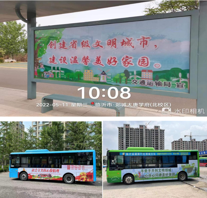 城市公交、出租系统是“移动的宣传栏”,我们充分利用现有资源,履行行业管理责任,协调企业积极做好各类创建宣传工作,在公告栏、出租车LED屏、服务窗口广泛宣传“讲文明、树新风”公益广告、社会主义核心价值观等。截至目前,已安装完成城区公交站牌创城标语78处,完成“全车体”创城标语喷涂公交车5辆,全县200辆运营中的出租车LED屏全部循环播放创城标语,汽车站LED屏幕,时刻滚动播出创城标语、社会主义核心价值观等内容。目前交通系统各项宣传工作仍在持续进行中,公交站牌、公交车体公益广告正在“增量提质”。