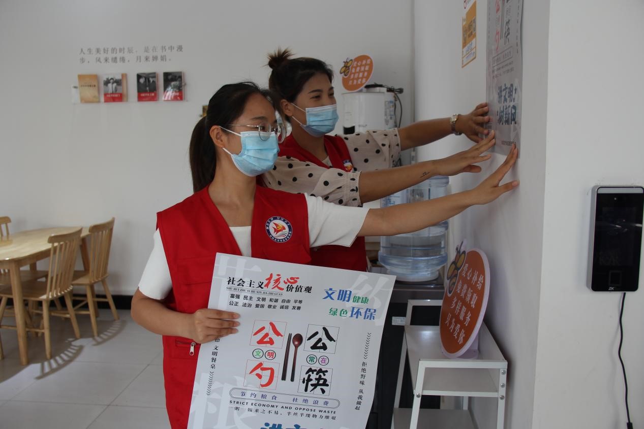 此外,正逢文明城市创建关键时期,县市场监督管理局党员走进社区餐厅,张贴文明用餐海报和桌贴,讲解社会主义核心价值观的意义,为社区居民树立“一粥一饭来之不易,半丝半缕物力维艰”的节约意识。